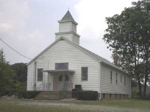 Directions: Starting at the Wayne County Court House in Fairfield, take Illinois 15 west about 15 miles to the Sims road. Take this road north about five miles to a four way intersection. Turn west for about one and a quarter miles to a road intersecting from the north. Take this road north for about a mile. The church and cemetery will be on the east side of the road.